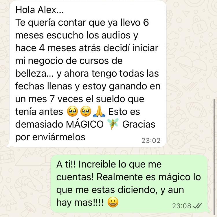 Los resultados individuales variarán. No hay garantía de que esto funcione para usted. No hay garantías ni promesas de que alcanzará sus metas y sueños. La información de este sitio web y el programa descrito tienen fines exclusivamente educativos e informativos. No sustituye el asesoramiento médico, psicológico, financiero o legal profesional. Los testimonios, ejemplos y resultados individuales presentados en este sitio web pueden no ser típicos y no garantizan que alguien logre resultados iguales o similares. Su confianza en la información presentada en este sitio web es bajo su propio riesgo. Los autores y editores de este sitio web y del programa descrito declinan cualquier responsabilidad o pérdida relacionada con la información y el contenido aquí presentados.